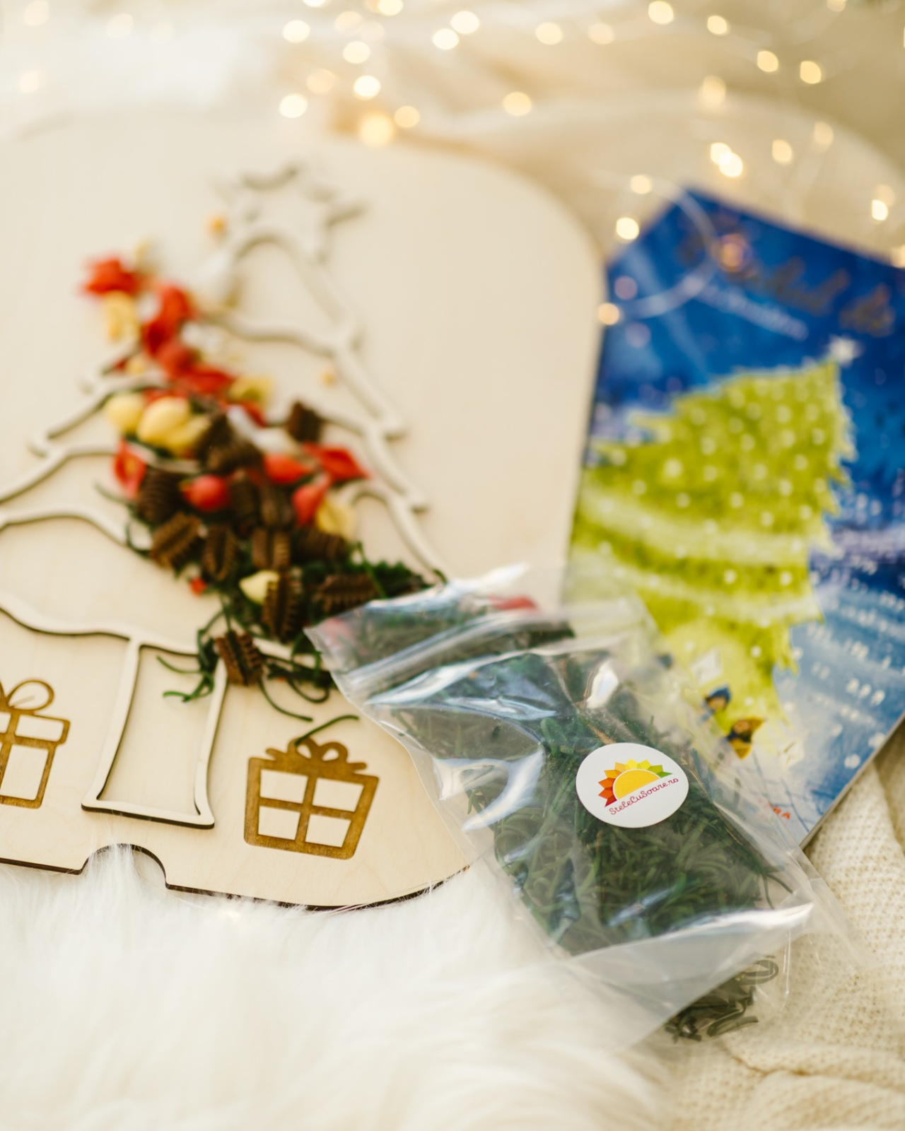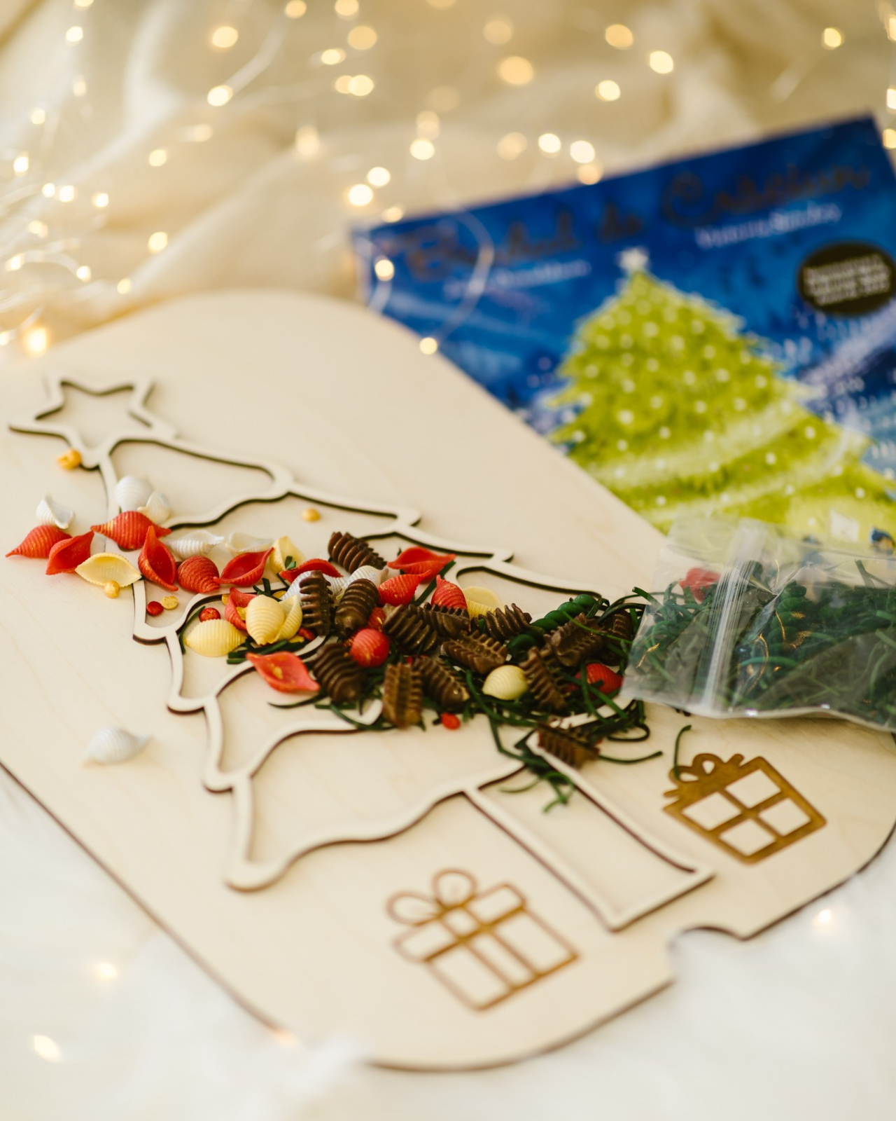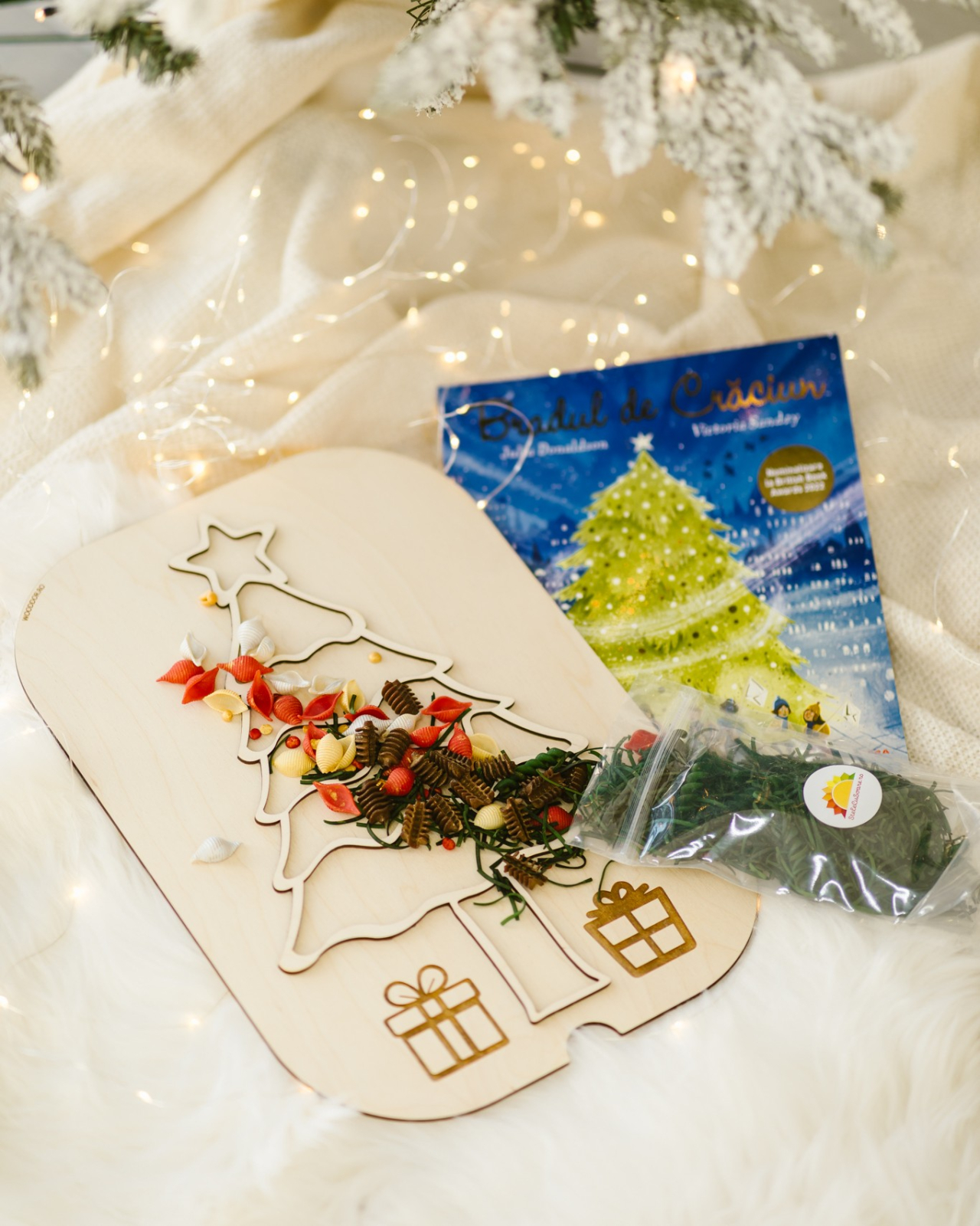 - Mixul senzorial "Bradul Fermecat" de la Stele cu Soare - un mix versatil, care inspiră copiii să exploreze texturi, să decoreze braduțul Wood Dor și să intre în atmosfera Crăciunului.